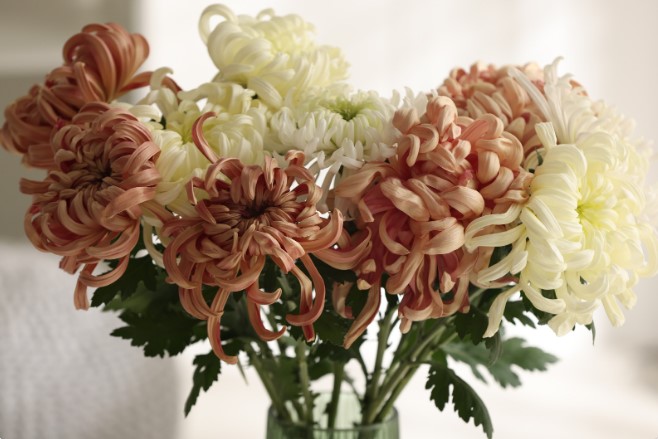 - Букеты из хризантем или гербер – особенно хороши для осенних дат, устойчивы и ярки.